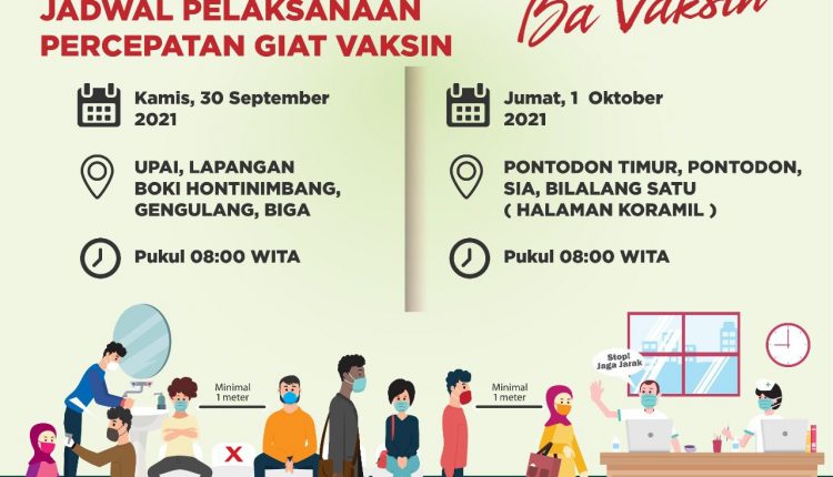 KOTAMOBAGU – Pemerintah Kota Kotamobagu, Melalui Dinas Kesehatan (Dinkes) Kotamobagu terus gencar melaksanakan kegiatan percepatan vaksinasi untuk masyarakat,Rabu 29 September 2021