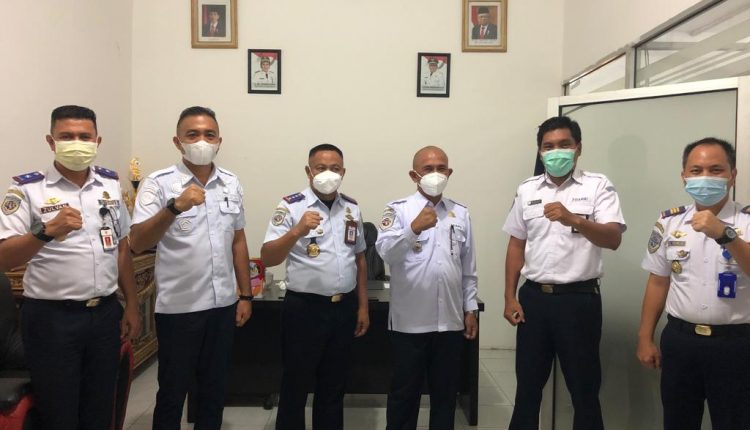KOTAMOBAGU -Dinas Perhubungan (Dishub) Kotamobagu menerima kunjungan, General Manager (GM) Perum Damri, Anwar L, didampingi Manager Keuangan, Gais Wahab, bersama tim, Selasa 12 Oktober 2021