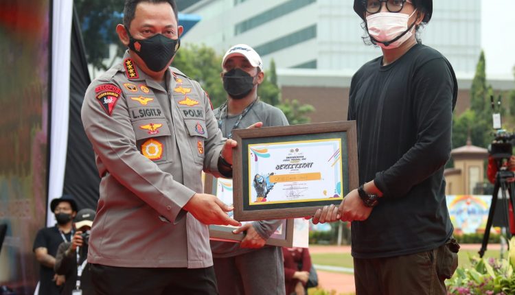 Dalam kegiatan ini, Kapolri menyerahkan piala sekaligus sertifikat penghargaan kepada 10 pemenang Bhayangkara Mural Festival 2021. 10 orang pemenang tersebut dipilih oleh para dewan juri.