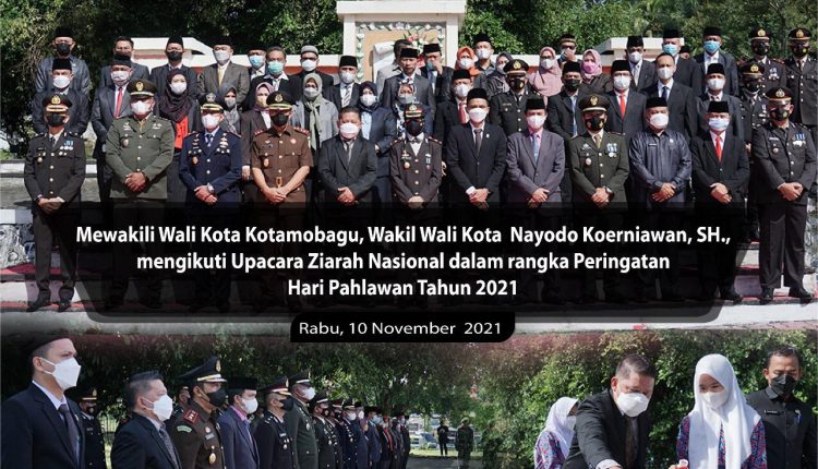 KOTAMOBAGU – Mewakili Wali Kota Kotamobagu, Wakil Wali Kota Kotamobagu, Nayodo Koerniawan, SH, mengikuti Upacara Ziarah Nasional dalam rangka peringatan Hari Pahlawan, yang dilaksanakan di Taman Makam Pahlawan (TMP) Mongkonai, Rabu 10 November 2021 pagi.