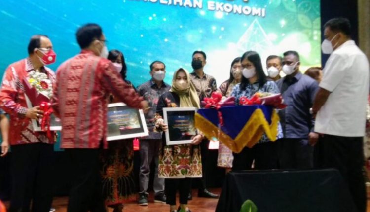 Piagam penghargaan diserahkan langsung Gubernur Sulut Olly Dondokambey didampingi Kepala Perwakilan BI serta Kepala OJK Sulawesi Utara pada acara rapat tahunan BI, Rabu 24 November 2021 lalu