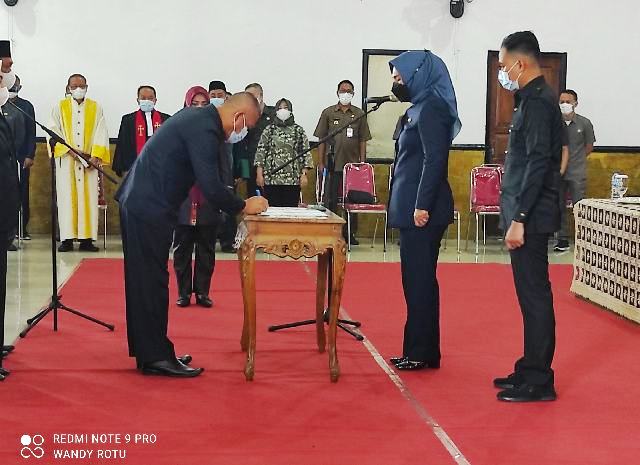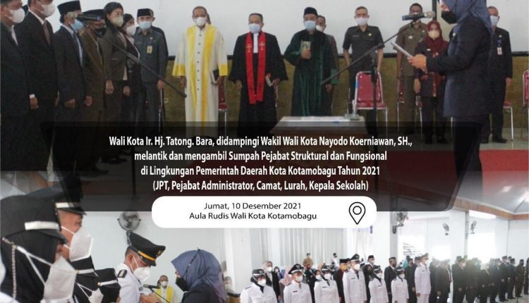 KOTAMOBAGU – Rolling pejabat atau mutasi jabatan di lingkup Pemkot Kota Kotamobagu kembali bergulir. Sejumlah pejabat eselon II dan III resmi dilantik dan diambil sumpah jabatan oleh Wali Kota Kotamobagu Ir. Hj. Tatong Bara di aula Pemkot dan Rudis Walikota, pagi tadi, Jumat 10 Desember 2021.