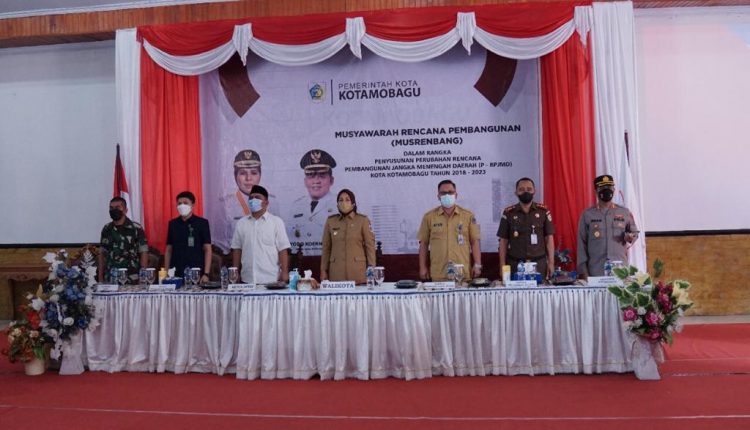 KOTAMOBAGU – Wali Kota Ir. Hj. Tatong Bara membuka secara resmi Musyawarah Rencana Pembangunan (Musrenbang) Perubahan Rencana Pembangunan Jangka Menengah Daerah (RPJMD) Tahun 2018-2023, Senin 13 Desember 2021