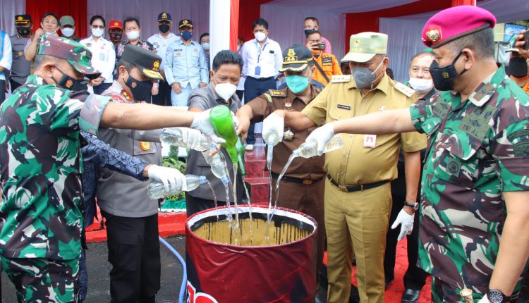 Kemudian dilakukan pemusnahan barang bukti secara simbolis oleh Kapolda Sulut Irjen Pol Mulyatno bersama Gubernur Sulut Olly Dondokambey dan Pimpinan Forkopimda Sulut lainnya ataupun yang mewakili.