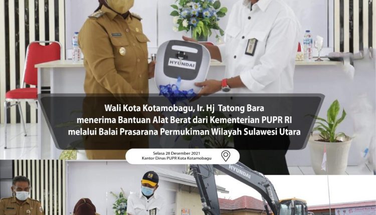 KOTAMOBAGU – Wali Kota Kotamobagu Ir. Hj. Tatong Bara menerima alat berat yang diserahkan oleh Kementerian Pekerjaan Umum dan Penataan Ruang Republik Indonesia melalui Balai Prasarana Pemukiman Wilayah Sulawesi Utara, bertempat di Kantor Dinas PUPR Kota Kotamobagu, Selasa 28 Desember 2021