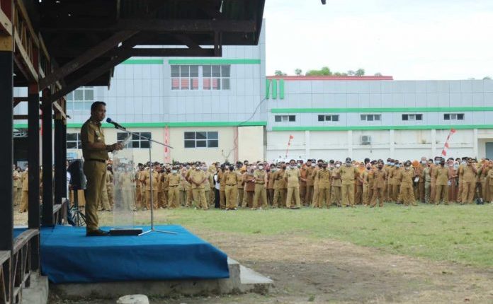 BOLTIM – Pemerintah Kabupaten Bolaang Mongondow Timur (Boltim), Senin (3/1/2022) menggelar apel kerja perdana tahun 2022, bertempat di Lapangan Gogaluman, Tutuyan.