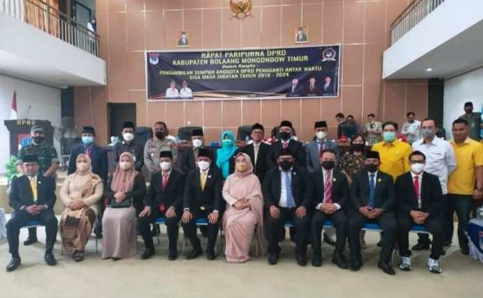 BOLTIM – Bupati Sam Sachrul Mamonto, menghadiri Rapat Paripurna Dewan Perwakilan Rakyat Daerah (DPRD) Kabupaten Boltim dalam rangka pengambilan sumpah anggota DPRD Pengganti Antar Waktu (PAW) sisa masa jabatan 2019-2024.