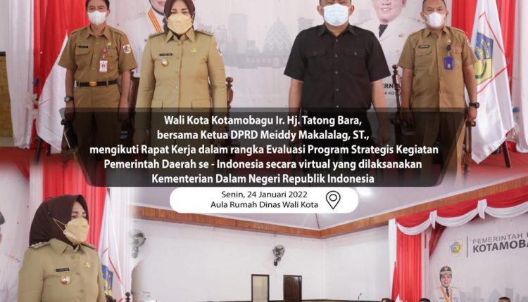 KOTAMOBAGU – Wali Kota Kotamobagu Tatong Bara bersama Ketua DPRD Kotamobagu Meiddy Makalalag, serta Sekretaris Daerah (Sekda) Sande Dodo, mengikuti Rapat Kerja (Raker) bersama Kementerian Dalam Negeri (Kemendagri) terkait Evaluasi Program Strategis Pemerintah Daerah serta briefing berkaitan dengan masalah pencegahan tindak pidana korupsi. Raker tersebut digelar secara virtual, di aula rumah dinas wali kota, Senin 24 Januari 2022