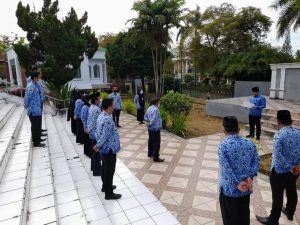 Sekretaris Dewan (Sekwan) DPRD Kotamobagu, Moch Agung Adati, memimpin langsung Apel Korpri yang dilaksanakan didepan kantor DPRD Kotamobagu, jalan Paloko -Kinalang.