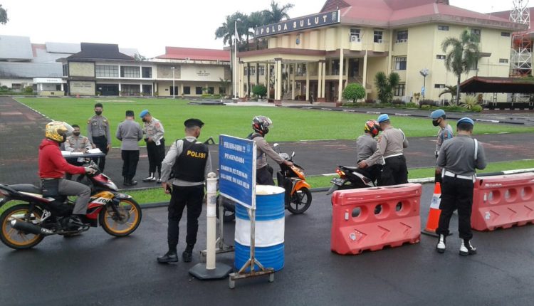 Selain personel Polri, masyarakat yang masuk pun tak luput dari pemeriksaan personel Propam yang sudah bersiaga sejak pukul 06.00 Wita di pintu gerbang Mapolda.