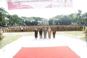SK CPNS itu diserahkan Wakil Wali Kota Kotamobagu, Nayodo Koerniawan secara simbolis kepada 13 perwakilan CPNS pada apel kerja yang digelar di Lapangan Boki Hotinimbang, Jumat, 1 April 2022.