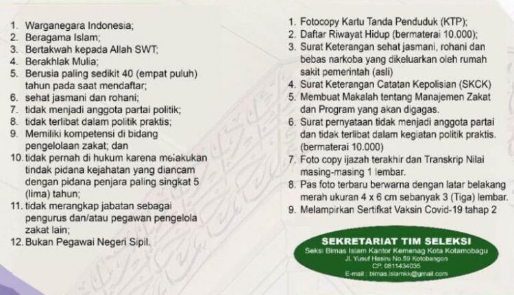 KOTAMOBAGU – Pemerintah Kota Kotamobagu telah membuka pendaftaran calon pimpinan Badan Amil Zakat Nasional (BAZNAS) Kotamobagu.