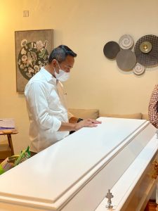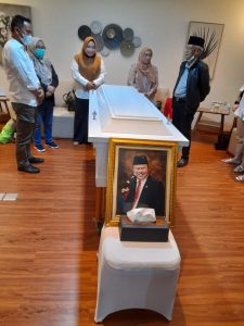BOLTIM – Bupati Bolaang Mongondow Timur, Sam Sachrul Mamonto, melayat jenazah Almarhum Herson Mayulu di Human Remais Transit Lounge Gedung Duty Free Terminal Kargo, Bandara Soekarno Hatta, Cengkareng, Banten, Minggu 17 April 2022