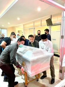 Selain mendoakan jenazah almarhum agar mendapat tempat yang layak di sisi Allah SWT, bupati juga ikut bersama keluarga mengangkat peti jenazah ke dalam ambulance menuju pesawat untuk diberangkatkan ke Manado.“Atas nama pribadi, keluarga, masyarakat dan jajaran Pemerintah Kabupaten Bolaang Mongondow Timur