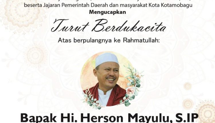 KOTAMOBAGU – Atas nama pribadi, jajaran pemerintah daerah serta masyarakat Kotamobagu, saya menyampaikan ungkapan duka yang mendalam atas berpulangnya ke Rahmatullah, Bapak Hi. Herson Mayulu,S.IP., anggota DPR RI Fraksi PDIP Daerah Pemilihan Sulawesi Utara.