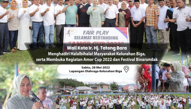 KOTAMOBAGU – Wali Kota Kotamobagu, Ir. Hj. Tatong Bara, menghadiri Halal Bi Halal Bersama masyarakat Kelurahan Biga Kecamatan Kotamobagu Utara, yang dirangkaikan dengan pembukaan Open Tournament Amor Cup 2022 dan Festival Binarundak, Sabtu 28 Mei 2022.