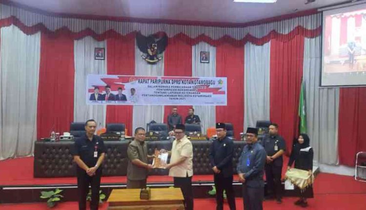 KOTAMOBAGU – Dewan Perwakilan Rakyat Daerah (DPRD) Kota Kotamobagu mengelar rapat paripurna dalam rangka pembicaraan tingkat II penyampaian rekomendasi tentang Laporan Keterangan Pertanggung Jawaban(LKPJ) Wali Kota Kotamobagu tahun 2021, Rabu (08/06/2022).