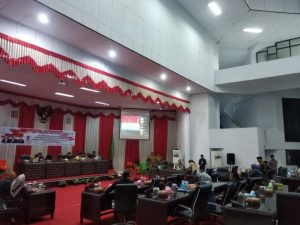 Rapat paripurna digelar di gedung paripurna DPRD Kota Kotamobagu dipimpin Wakil Ketua DPRD Kotamobagu Herdy Korompot, didampingi Ketua DPRD Meiddy Makalalag,ST.
