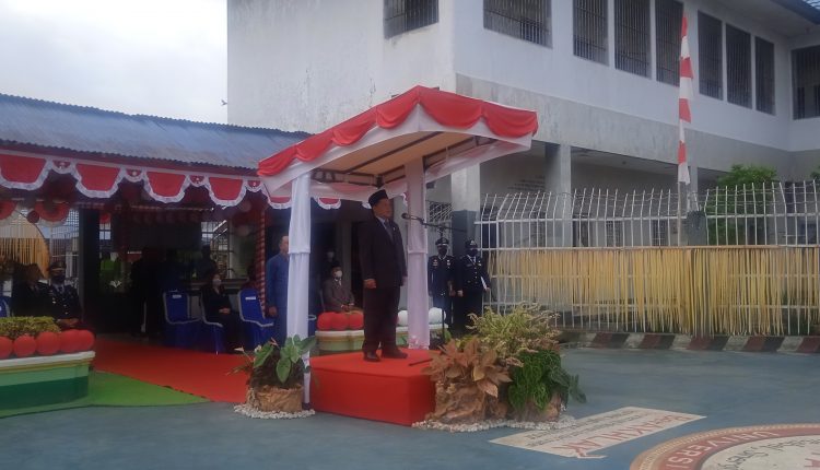 Pada kesempatan tersebut,wakil wali kota menjadi inspektur upacara, dan membacakan sambutan menteri Hukum dan HAM Yasona Laoly.