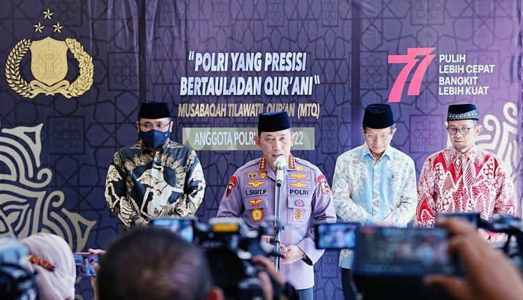 INDO NEWS  – Kapolri Jenderal Listyo Sigit Prabowo menghadiri penganugerahan Musabaqah Tilawatil Qur’an (MTQ) anggota Polri di Auditorium STIK-PTIK, Kamis (18/82022). Kapolri menyebut sekitar 796 personel Polri dari 34 Polda mengikuti acara yang diselenggarakan dalam rangka HUT Kemerdekaan RI ke-77.