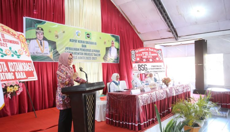 KOTAMOBAGU —Wali Kota Kotamobagu, Ir. Hj. Tatong Bara, membuka kegiatan Rapat Kerja Daerah (Rakerda) III Badan Kontak Majelis Taklim (BKMT) Kota Kotamobagu Tahun 2022, Kamis 25 Agustus 2022.