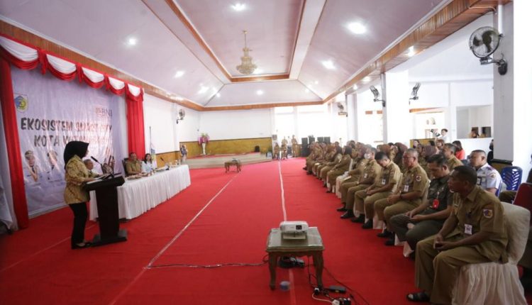 KOTAMOBAGU- Wali Kota Kotamobagu, Ir. Hj. Tatong Bara menerima kunjungan kerja Wakil Pimpinan Wilayah PT. Bank Negara Indonesia (Persero) Tbk. Suluttenggo, Lucky Lahope di Kota Kotamobagu, dalam rangka presentasi Ekosistem Smart City.
