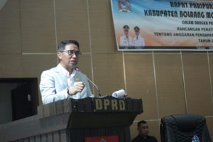 BOLTIM – Bupati Bolaang Mongondow Timur (Boltim), Sam Sachrul Mamonto S.Sos M.Si, menghadiri rapat paripurna, dalam rangka penyampaian Rancangan Peraturan Daerah (Ranperda) Anggaran Pendapatan dan Belanja Daerah (APBD) tahun anggaran 2023.