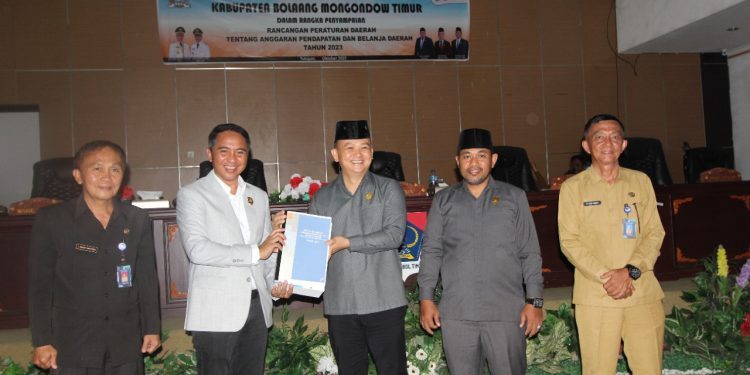 BOLTIM – Bupati Bolaang Mongondow Timur (Boltim), Sam Sachrul Mamonto S.Sos M.Si, menghadiri rapat paripurna, dalam rangka penyampaian Rancangan Peraturan Daerah (Ranperda) Anggaran Pendapatan dan Belanja Daerah (APBD) tahun anggaran 2023.