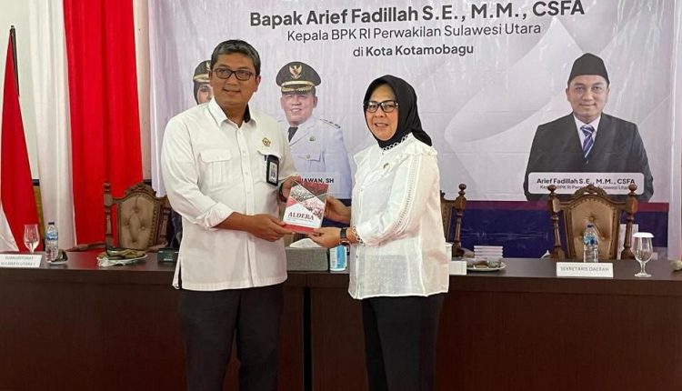 KOTAMOBAGU — Wali Kota Kotamobagu, Ir. Hj. Tatong Bara, menerima kunjungan kerja Kepala Badan Pemeriksa Keuangan (BPK) Republik Indonesia Perwakilan Provinsi Sulawesi Utara, Arief Fadillah, S.E, M.M, CSFA, Rabu 23 November 2022.
