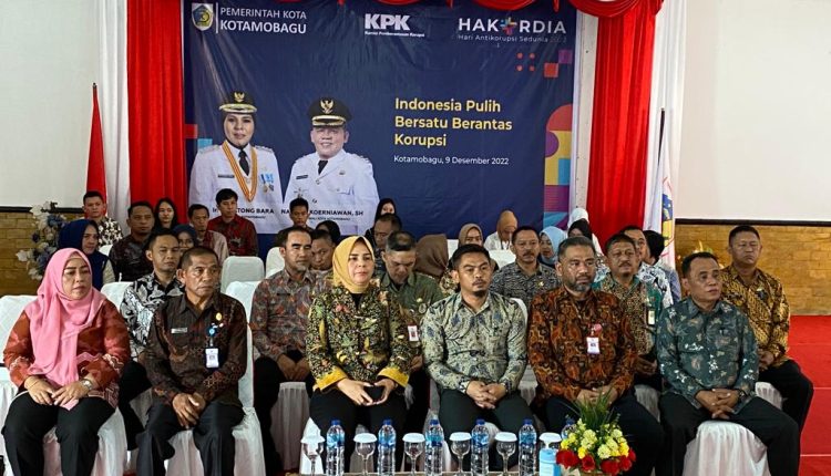 KOTAMOBAGU – Wali Kota Kotamobagu, Ir. Hj. Tatong Bara, Bersama pimpinan Organisasi Perangkat Daerah dilingkungan Pemerintah Kota Kotamobagu, menghadiri secara virtual kegiatan peringatan Hari Anti Korupsi se-Dunia (Hakordia) Tahun 2022, Jumat 9 Desember 2022.