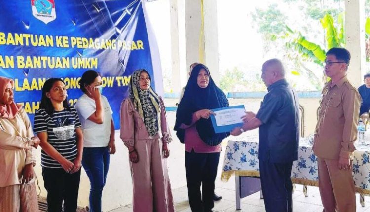 BOLTIM – Pemerintah Kabupaten (Pemkab) Bolaang Mongondow Timur (Boltim), melalui Dinas Perindustrian dan Perdagangan (Disperindag) menyerahkan bantuan sosial dan bantuan modal usaha kepada pedagang dan pelaku usaha mikro kecil menengah (UMKM) di Pasar Ambang Modayag, Selasa (20/12/2022).