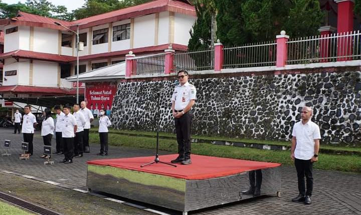 MINAHASAUTARA_Membuka lembaran kegiatan di tahun 2023, Pemerintah Kabupaten Minahasa Utara melaksanakan apel perdana yang dipimpin oleh Bupati Minahasa Utara Joune J.E. Ganda, S.E., M.A.P di lapangan upacara Pemkab Minut, Rabu (04/01/23).