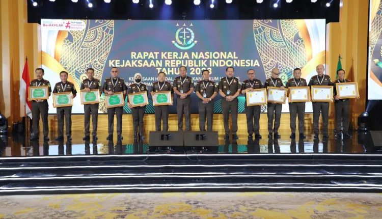 JAKARTA_Dalam Penutupan Rapat Kerja Nasional Kejaksaan Republik Indonesia Tahun 2023, Wakil Jaksa Agung memberikan penghargaan dan apresiasi kepada satuan kerja di lingkungan Kejaksaan RI, Jumat (06/01/23).