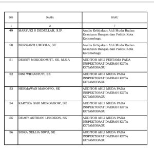 Berikut Nama – Nama 56 Pejabat Fungsional Pemkot Kotamobagu Yang Baru Dilantik: