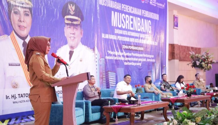 KOTAMOBAGU – Wali Kota Kotamobagu, Ir. Hj. Tatong Bara membuka Musyawarah Rencana Pembangunan (Musrenbang) penyusunan Rencana Kerja Pemerintah Daerah (RKPD) Kota Kotamobagu Tahun 2024, Senin (27/3/2023).