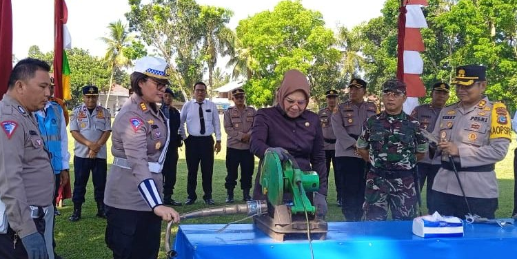 Walikota Kotamobagu Hadiri Pemusnahan Knalpot Racing dan Miras Yang di Gelar Polres Kotamobagu