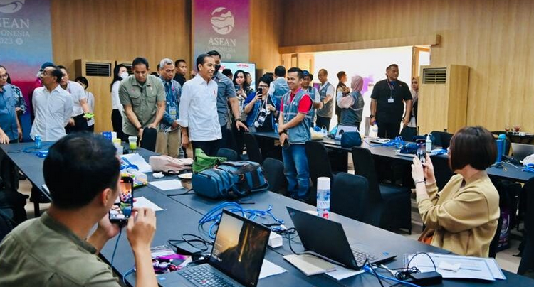 Jokowi Tinjau Pusat Media KTT Ke-42 ASEAN