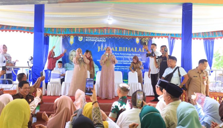 KOTAMOBAGU – Wali Kota Kotamobagu, Ir. Hj. Tatong Bara menghadiri kegiatan Halal Bi Halal yang dirangkaikan dengan Audience Pemerintah Kota Kotamobagu dengan masyarakat Kecamatan Kotamobagu Barat, Selasa 9 Mei 2023.