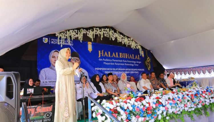 KOTAMOBAGU – Wali Kota Kotamobagu, Ir. Hj. Tatong Bara bersama Wakil walikota Kotamobagu Nayodo Koerniawan (TB-NK) menghadiri pelaksanaan kegiatan Halal Bi Halal yang dirangkaikan dengan audience pemerintah Kota Kotamobagu bersama masyarakat Kecamatan Kotamobagu Timur, Rabu (10/5/2023).