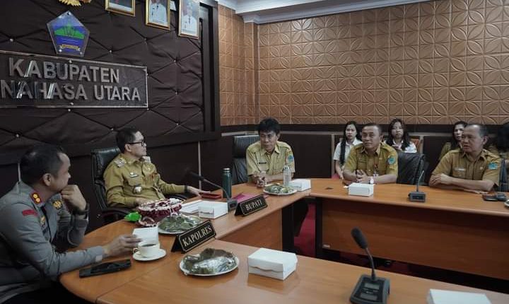 MINUT_Bupati Joune Ganda bersama Kapolres Minut didampingi Asisten Perekonomian dan Pembangunan bersama Tim Pengendali Inflasi Daerah (TPID) mengikuti Rapat Koordinasi (Rakor) Pengendalian Inflasi Daerah 2023 bersama Menteri Dalam Negeri secara virtual, Senin (29/05/23).