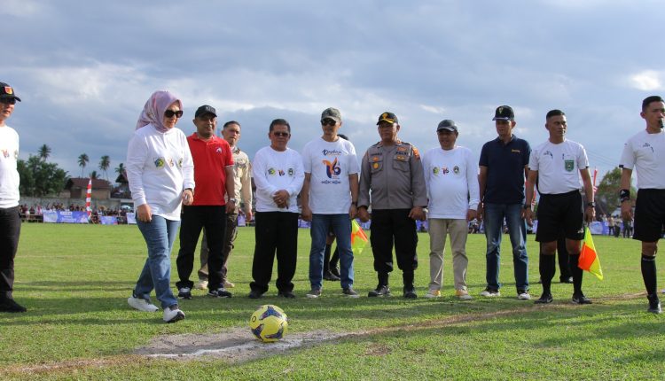 KOTAMOBAGU — Wali Kota Kotamobagu, Ir. Hj. Tatong Bara didampingi Wakil Wali Kota Kotamobagu Nayodo Koerniawan membuka secara resmi pelaksanaan kegiatan Open Tournament Sepak Bola Wali Kota Cup Tahun 2023, Minggu (28/5/2023).