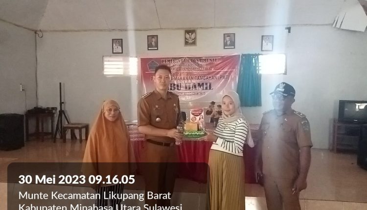 MINUT_Dalam upaya meningkatkan kesehatan masyarakat terlebih khusus untuk ibu hamil, Pemerintah Desa Munte menyalurkan bantuan pemberian Makanan Tambahan (PMT), di Kantor Hukum Tua, Selasa (30/05/23).