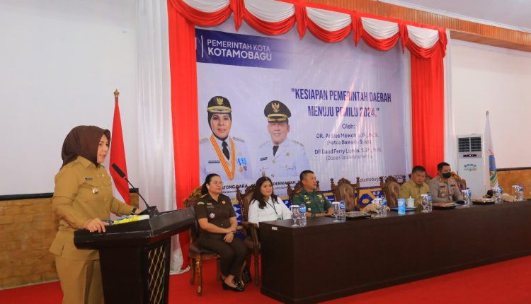 KOTAMOBAGU — Wali Kota Kotamobagu, Ir. Hj. Tatong Bara dan Wakil Wali Kota Nayodo Koerniawan, SH.,(TB NK) menghadiri pelaksanaan Sosialisasi kesiapan Pemerintah Daerah menuju Pemilihan Umum (Pemilu) Tahun 2024, Senin (5/6/2023), di Aula Rudis Wali Kota, Jalan Ahmad Yani Kotamobagu.