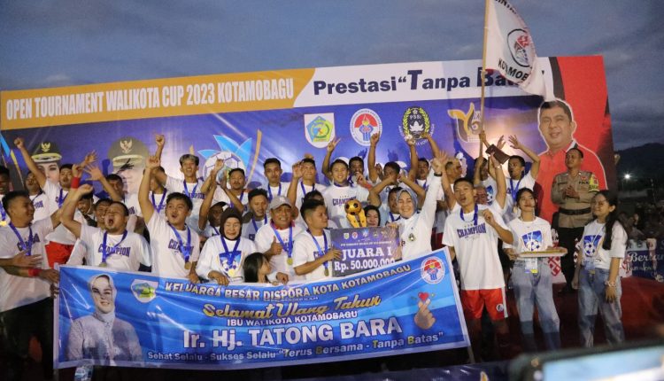 KOTAMOBAGU – Laga Grand Final Open Turnamen Wali Kota Cup V 2023 berlangsung dengan sangat seru di Stadion Nunuk Matali, Selasa (11/7/2023)