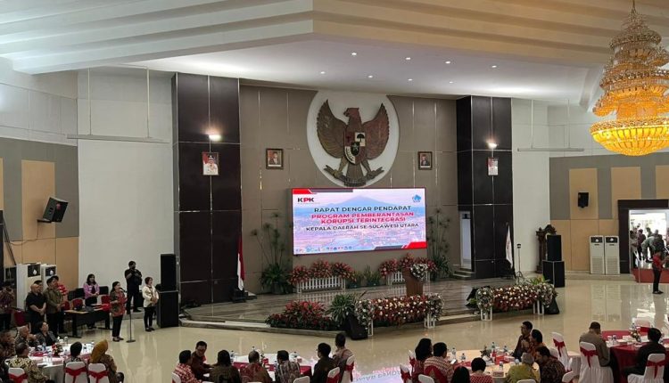 MANADO – Wali Kota Kotamobagu Ir. Hj. Tatong Bara, menghadiri Rapat Dengar Pendapat (RDP) Program Pemberantasan Korupsi Terintegrasi Kepala Daerah Se-Sulawesi Utara, di Ruang Mapalus Kantor Gubernur Sulawesi Utara, Kamis (27/7/2023).
