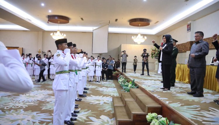 KOTAMOBAGU — Wali Kota Kotamobagu, Ir. Hj. Tatong Bara melantik dan mengukuhkan 36 anggota Pasukan Pengibar Bendera Pusaka (Paskibraka) Tingkat Kota Kotamobagu, Tahun 2023, Selasa (15/8/2023).