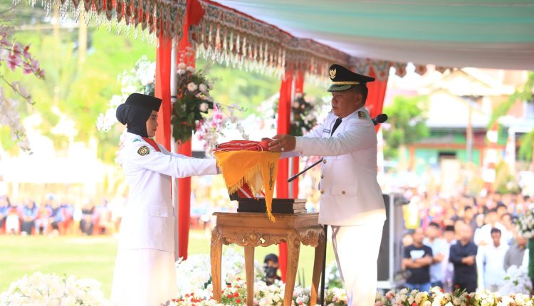 KOTAMOBAGU — Wakil Wali Kota (Wawali) Kotamobagu, Nayodo Koerniawan, S.H., bertindak sebagai Inspektur Upacara (Irup) pada Upacara penurunan Bendera Merah Putih dalam rangka memperingati Hari Ulang Tahun (HUT) ke – 78 Kemerdekaan Republik Indonesia, Kamis (17/8/2023).