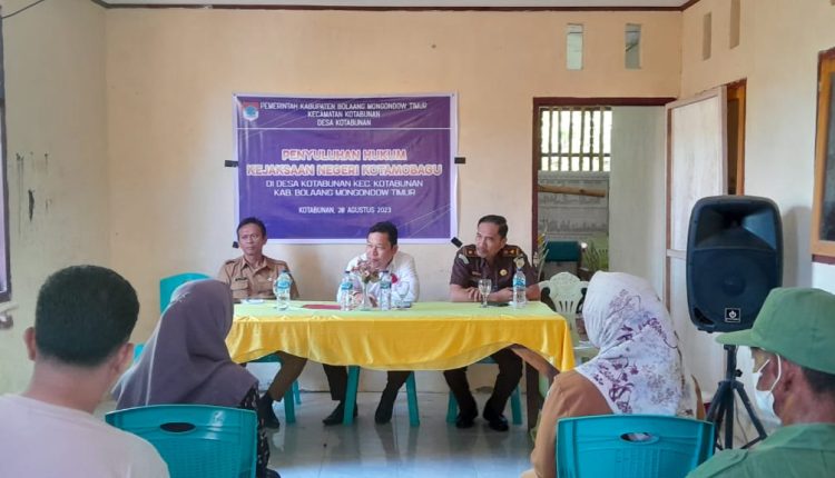 BOLTIM – Kejaksaan Negeri (Kejari) Kotamobagu melaksanakan penyuluhan hukum di 3 Desa di Kabupaten Bolaang Mongondow Timur (Boltim), Senin (28/8/2023).