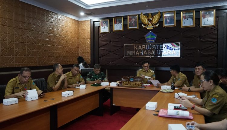 Pemerintah Kabupaten Minahasa Utara dipimpin Bupati Joune Ganda didampingi Sekda Novly Wowiling, Asisten Perekonomian dan Pembangunan, Forkopimda unsur TNI bersama Tim Pengendalian Inflasi Daerah mengikuti rakor yang dipimpin Mendagri Muhammad Tito Karnavian secara virtual, di Ruang Multimedia, Senin (04/09/23).