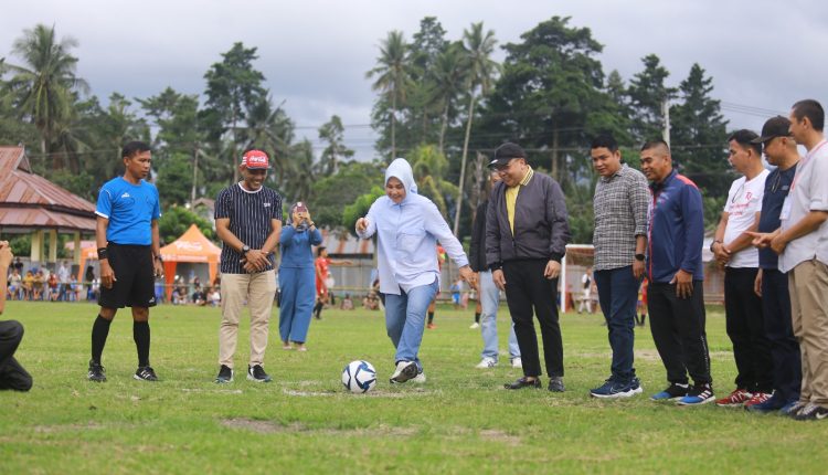 KOTAMOBAGU — Wali Kota Kotamobagu, Ir. Hj. Tatong Bara membuka secara resmi Turnamen Sepak Bola se – Bolaang Mongondow Raya Motoboi Kecil CUP 2023, Minggu (17/9/2023).